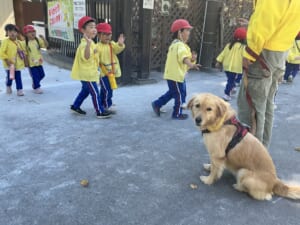 わんちゃんがお見送りしてくれました。さよなら、また来るね。