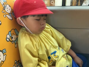 帰りはバスですやすや。楽しい夢を見ているかな?