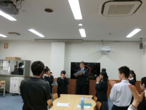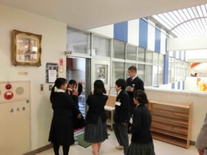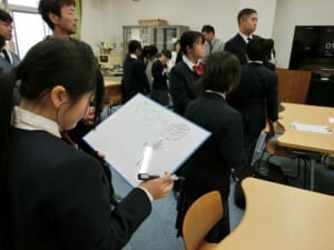 10月28日(火)、毎年恒例の交流会が行われました。年ごとに交互に訪問し合って実施していますが、今年は本校開催の番です。聾学校からは、中等部生10名程度(予定者数)と小野校長先生をはじめ大勢の職員の方々がいらっしゃいました。本校は、社会研究部の生徒10名(3年生3名、2年生3名、1年生4名)が中心となり、関係の先生方と話し合い協力し合って企画し、当日の進行・運営も行いました。本校の上級生は、過去の交流会にも参加しており、聾学校の生徒の皆さんとの再会に喜んでいました。初めての生徒の皆さんは、最初は互いに緊張していましたが、校舎案内、レクリエーション・ゲーム(絵しりとり)、懇談、本校生による手話歌の披露など、日程が進むにしたがって、時間が過ぎるのが速く、また、名残惜しく感じるほど、暖かく、楽しい交流会となりました。終わりの会の挨拶の後、聾学校の皆さんをお見送りしました。両校の生徒の皆さん、素晴らしい出会いになりましたね。また、来年お会いしましょう、楽しみにしております。