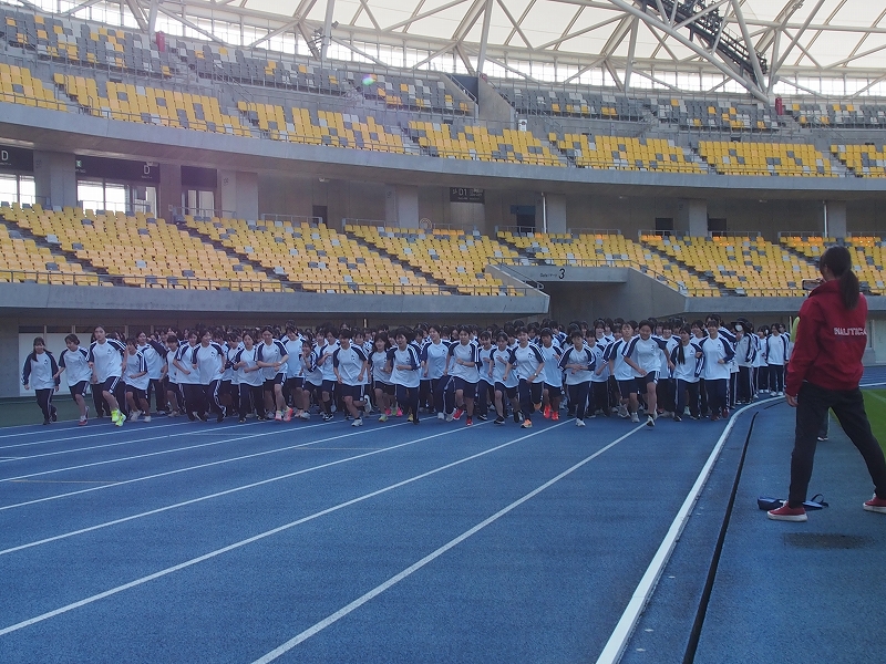 ト英・英 持久走大会 投稿日:2025年11月12日 11/7(金)、持久走大会を行いました。カンセキスタジアムをお借りするのも3回目です。 今年もまた絶好の持久走日和で、走るのにはちょうど良い気候でした。 体育の先生方を中心に、教員と見学生徒、そして保護者の方々が運営スタッフとして生徒の走りを見守りました。 教員の中には、自らが伴奏ランナーとなった者もいましたので、生徒は安心して取り組むことができたと思います。 生徒みんなが体育の時間に重ねてきた練習の成果を発揮することができました。 コースミスや故障者もなく、充実した一日となりました。