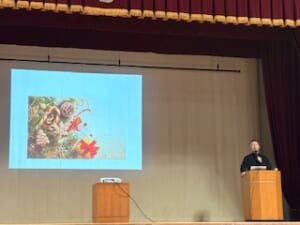 MDの後には大川中等部長から、知ることは学ぶこと。異なる文化を理解することってなかなか難しいです。当り前のことが、当たり前でないことがたくさんあります。より広く異文化を理解しましょう。とMDの話を引用して話してくれました。