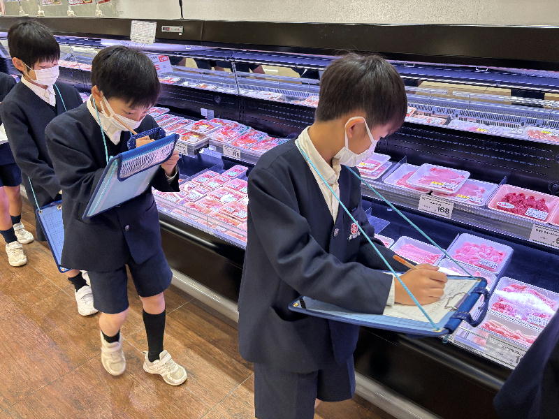小学 スーパーマーケットのひみつをさぐろう(3年) 投稿日:2025年11月12日 3年生は,社会科の「お店ではたらく人の仕事」の学習の一環で,近くのスーパーマーケットを見学しました。ふだんの買い物で行き慣れているスーパーですが,調べてみると,お客さんのために品ぞろえやサービスなど,たくさんの工夫がされているところを見つけることができました。また,バックヤードも見学させてもらい,ふだんは見ることのできない仕事の様子,お店の方の思いなどにもせまることができました。 お忙しい中見学させていただいたスーパーオータニ一の沢店の皆様,ありがとうございました。