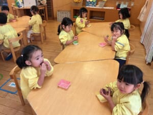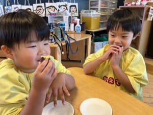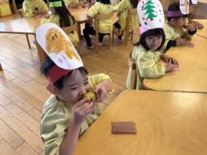 何の添加物も入っていない素材そのものの甘いさつまいも。お代わりの声がたくさん聞かれました。こういう素朴なおやつが意外と子どもたちに人気です。