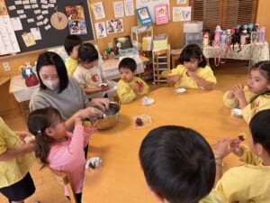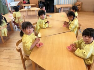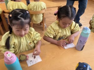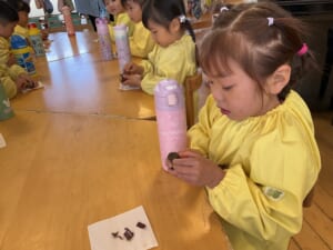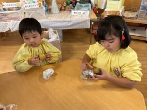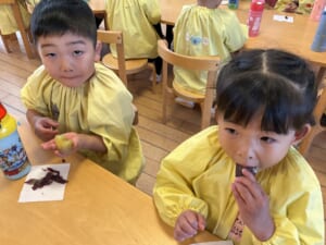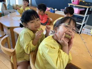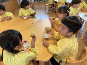 何の添加物も入っていない素材そのものの甘いさつまいも。お代わりの声がたくさん聞かれました。こういう素朴なおやつが意外と子どもたちに人気です。