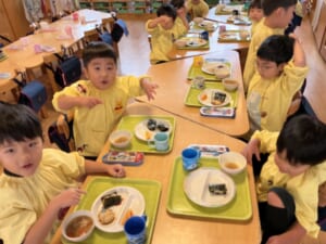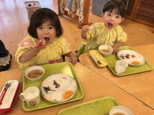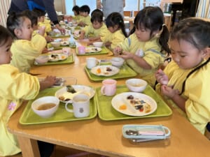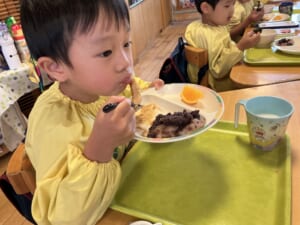 ぴよぴよ、ひよこ組の子は小さくちぎってもらいました。お餅を初めて食べる子もいたようですが、お代わりをして良く食べていました。