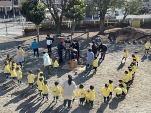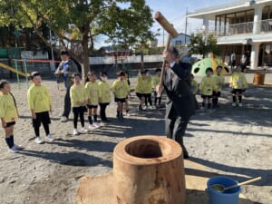 年末恒例の行事「もちつき」が行われました。寒い朝になりましたが、良く晴れて、冬の青空の下で、みんな頑張ってお餅をつく体験が出来ました。今年は例年以上におやじの会のお父さんたちの参加率が高く、大変助かりました。