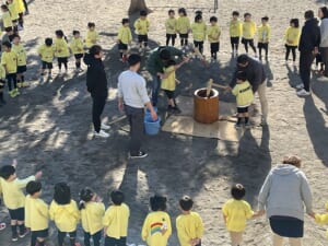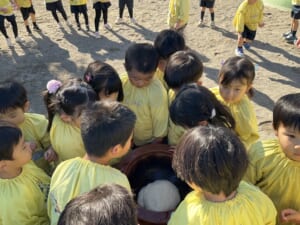 年長組、年中組・ひよこ組、年少組と3か所に分かれてつきました。