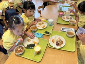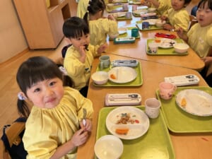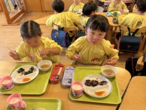 ぴよぴよ、ひよこ組の子は小さくちぎってもらいました。お餅を初めて食べる子もいたようですが、お代わりをして良く食べていました。