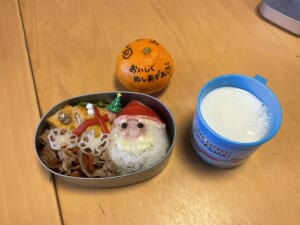 毎回お弁当の日は何かの行事に重なって、久しぶりのアップになります。今日は2学期最後のお弁当の日でした。今月から、暖飯器を使って温めておくので、ほかほかのお弁当を食べることが出来ます。子どもたちはお弁当を嬉しそうに見せてくれます。
