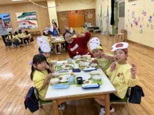 職員室の先生方もまぜてもらいました。みんなで食べると美味しいね。