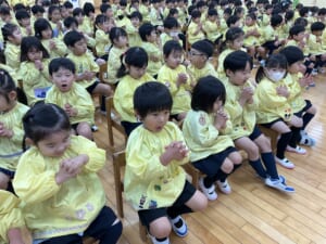 讃美歌とお祈り、朝のご挨拶。そして園長先生からクリスマスの本当の意味やイエス様が生まれた時の聖書のお話を聞きました。