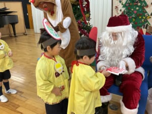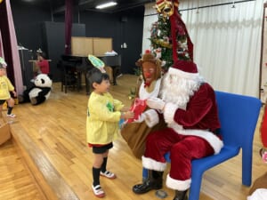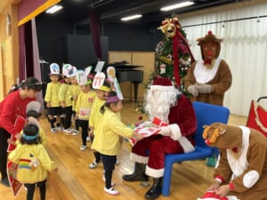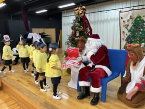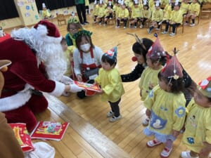 それから、小さい組から順に一人ひとりプレゼントを手渡してもらいました。