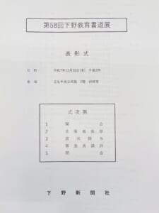 12月19日(金)、壬生中央公民館にて開催された、第58回下野教育書道展の表彰式に出席しました。