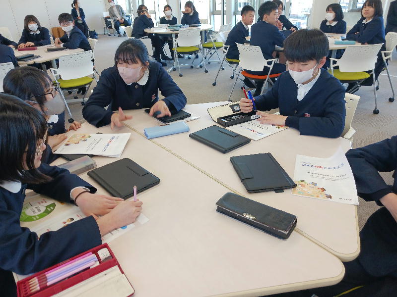 後半の財政教育プログラムでは,日本の現在の財政の状況を学んだあと,予算づくりのシミュレーションを行いました。自分たちが重視する政策を達成するためには,どのようにお金を集めたり,振り分けたりすればいいのかを話し合いました。歳入,歳出を考えて予算を作ることの大切さ,難しさを感じることができました。