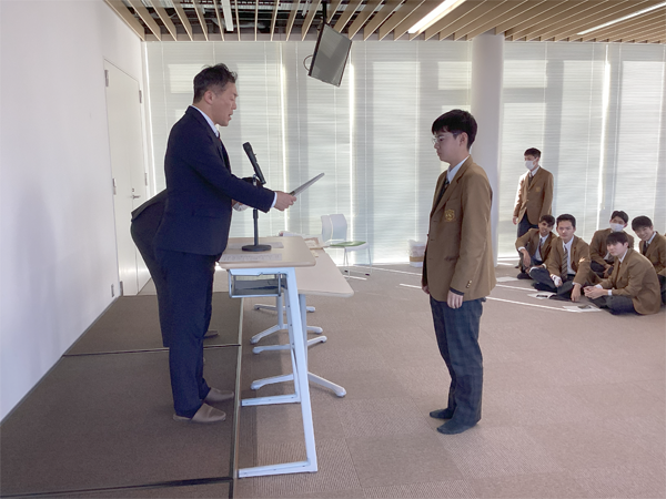 2月12日(木)本学院アカデミア・ラボにおいて「三級自動車整備士合格証書授与式」が行われました。今年度も、対象となる生徒全員が自動車整備士の資格を取得するという快挙を達成しました。日々の実習や学科試験対策に真剣に取り組み、仲間と励まし合いながら積み重ねてきた努力が実を結びました。