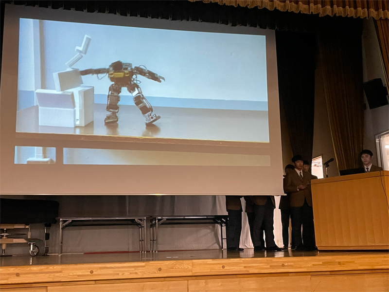2月13日(金)本学院聴蛙館において「電気・電子システム科 科内表彰」並びに「第22回課題研究発表会」を実施しました。科内表彰では、各種資格・検定において優秀な成果を収めた生徒が紹介されました。続いて行われた課題研究発表会では、4つの班がそれぞれの研究テーマに基づき、1年間の探究成果を発表しました。各班が磨いてきた専門的な技術力を堂々と披露しました。