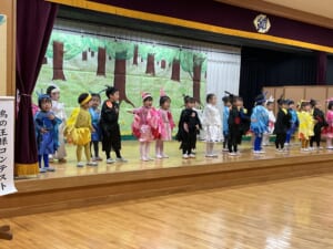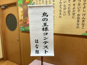 年少はな組は「鳥の王様コンテスト」カラフルな鳥の衣装を来て、それぞれの特技を披露します。