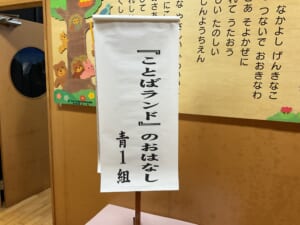 年長青1組の幼稚園最後のこども劇場の演目は「ことばランドのおはなし」