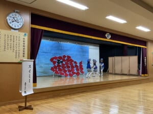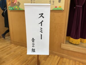 青2組は「スイミー」のオリジナルバージョン。みんながそれぞれの持ち場を守って協力するということが大きなテーマです。劇もお互いに助け合いながら見事に演じてくれました。