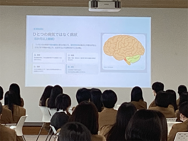 2月17日(火)、アカデミ・ラボにてライフデザイン科1・2年生を対象に、「認知症サポーター養成講座」を実施しました。生徒たちは講座に真剣に取り組み、認知症への正しい理解と温かい関わり方について学びました。参加した生徒からは、「核家族が多く、祖父母と会う機会が少ないが、次に会うときには今日学んだことを参考に、優しく、余裕をもって接したい」といった感想が寄せられました。今回の学びが、地域で支え合う社会づくりに向けた第一歩となることを期待しています。