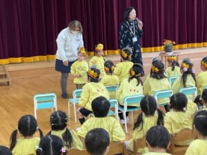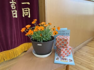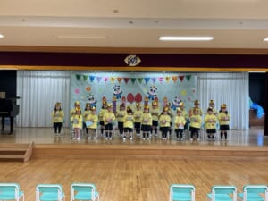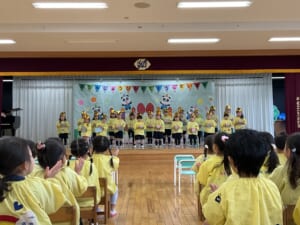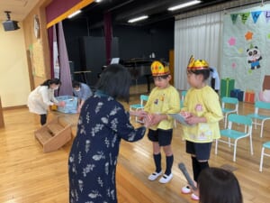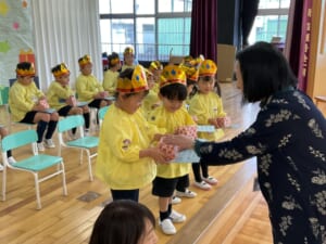 壇上でひとり、ひとり、大きな声でお名前を言って、園長先生からプレゼントをもらいました。