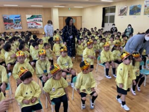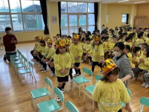 鬼の登場にハラハラする子供たち。負けるなあ〜の声援です。