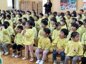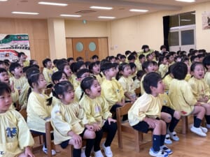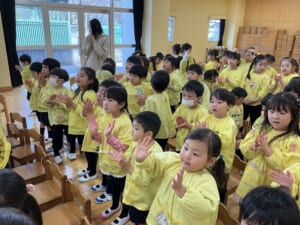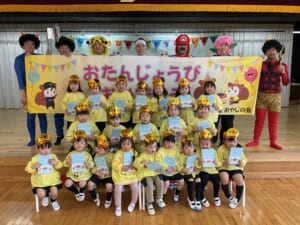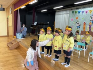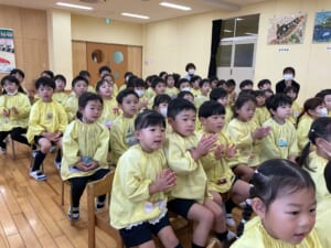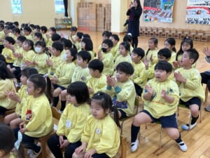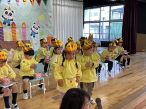 今年度最後、3月生まれのお誕生会がありました。3月生まれはとても多く、全部で21名です。これでクラスの全員が今年度の誕生会を迎えたことになります。ひよこ組のお友達は今日が初めての登園日。いきなりのお誕生会です。