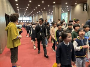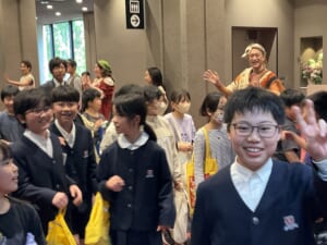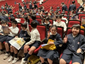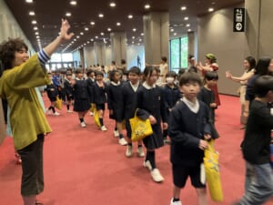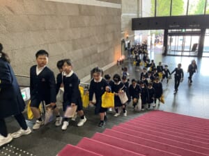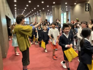 劇団四季の演者さんたち全員が見送ってくれて、児童たちも嬉しそうでした。観劇の姿勢も立派で、先生から褒められていました。さすが!小さな紳士、淑女たち。