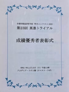 11月16日(日)、作新学院アカデミア・ラボにて、作新学院学力コンテスト2025『第23回英進トライアル』成績優秀者表彰式が行われました。中等部からは、やむを得ず出席できなかった方もいらっしゃいましたが、今年も多数の表彰 ...