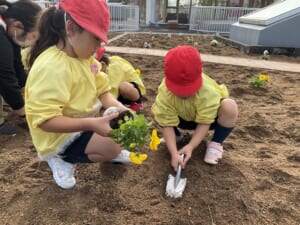 幼稚園では毎年、冬の初めに屋上の花壇にパンジーとビオラ、チューリップの球根を植えています。今年も色とりどりのパンジー、ビオラを年中組さんが植えてくれました。先生の説明をよく聞いて、2人1組になって植えました ...